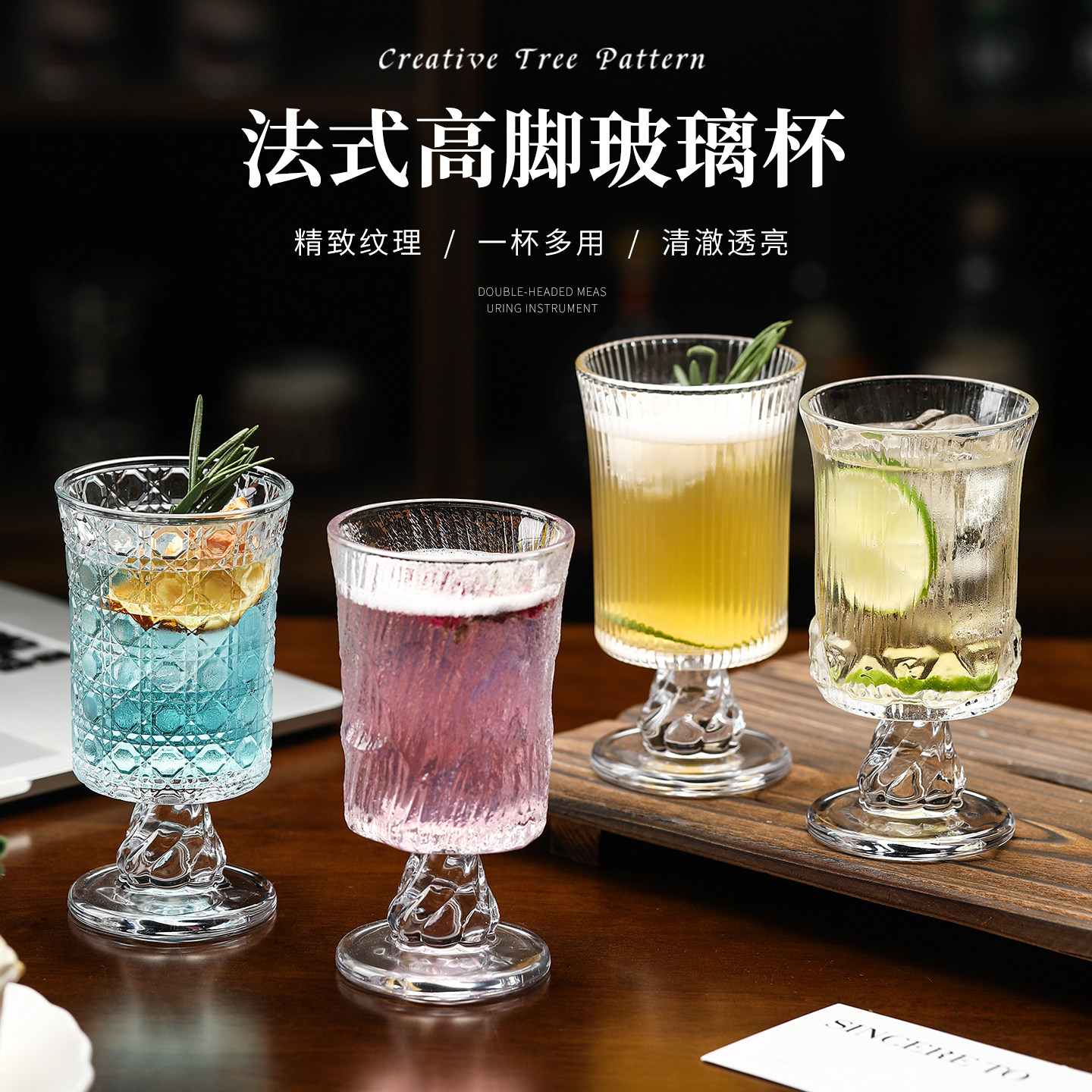 法式玻璃高脚杯家用高颜值冷饮果茶气泡水鸡尾酒特调杯加厚饮品杯