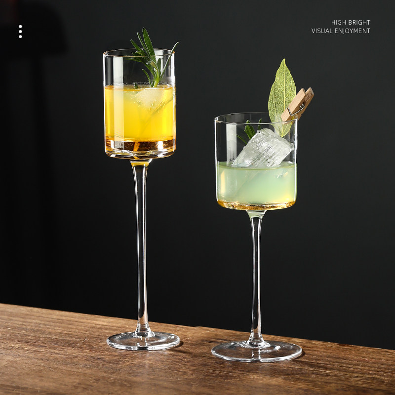 日式水晶高脚杯香槟杯 创意鸡尾酒杯子直筒马天尼杯酒吧专用酒杯