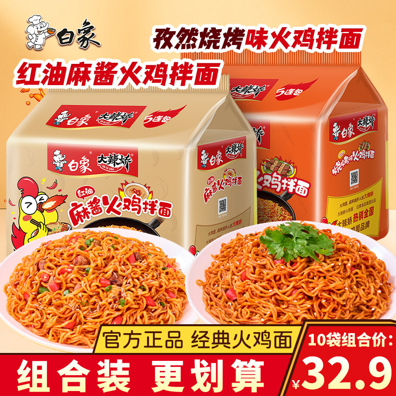 白象大辣娇红油麻酱火鸡面干拌面夜宵速食整箱泡面孜然烧烤方便面