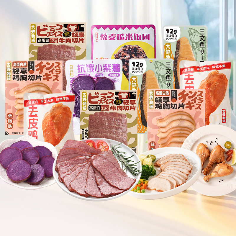 【打卡月计划】牛肉切片三文鱼鸡胸肉去皮鸡腿即食紫薯饭团共48袋