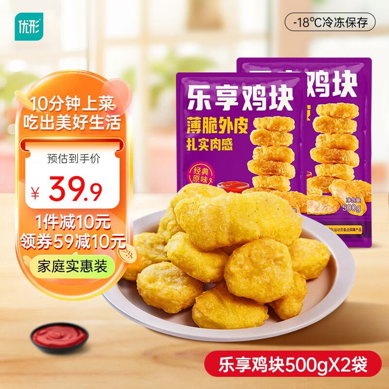 凤祥食品优形劲脆鸡米花乐享鸡块油炸冷冻半成品空气炸锅食材炸鸡小吃零食 优形乐享鸡块500g*2袋