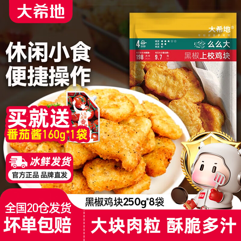 大希地鸡米花黑椒鸡块 速冻半成品 全家桶空气炸锅油炸小吃半成品零食 黑椒鸡块250g*8袋