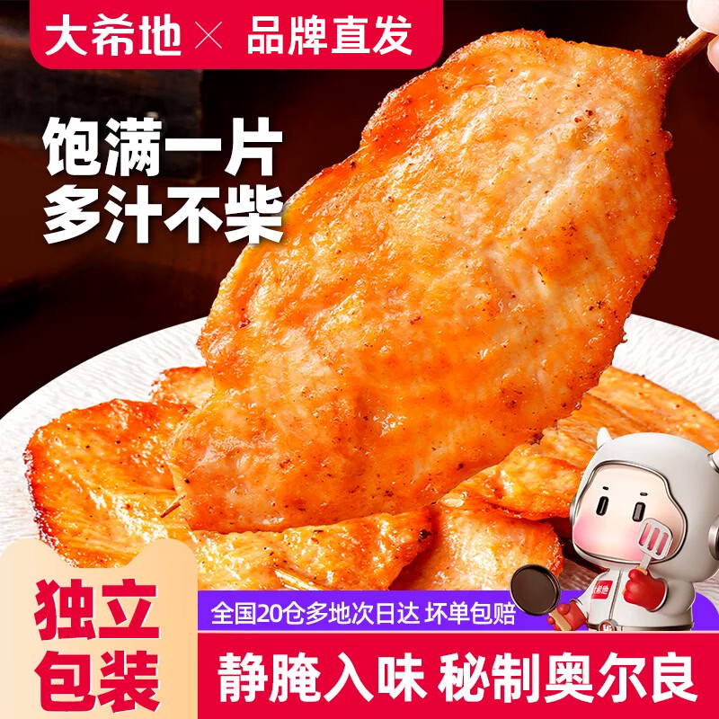 大希地奥尔良里脊肉片里脊肉串鸡肉串早餐半成品儿童烤串空气炸锅食材 奥尔良味里脊肉串400g*1袋+赠鸡小排80g*1袋