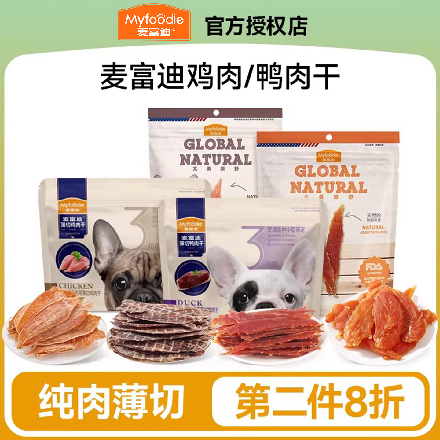 麦富迪肉干狗狗零食鸡肉鸭肉干磨牙鸡胸肉肉条小型犬幼犬训练奖励