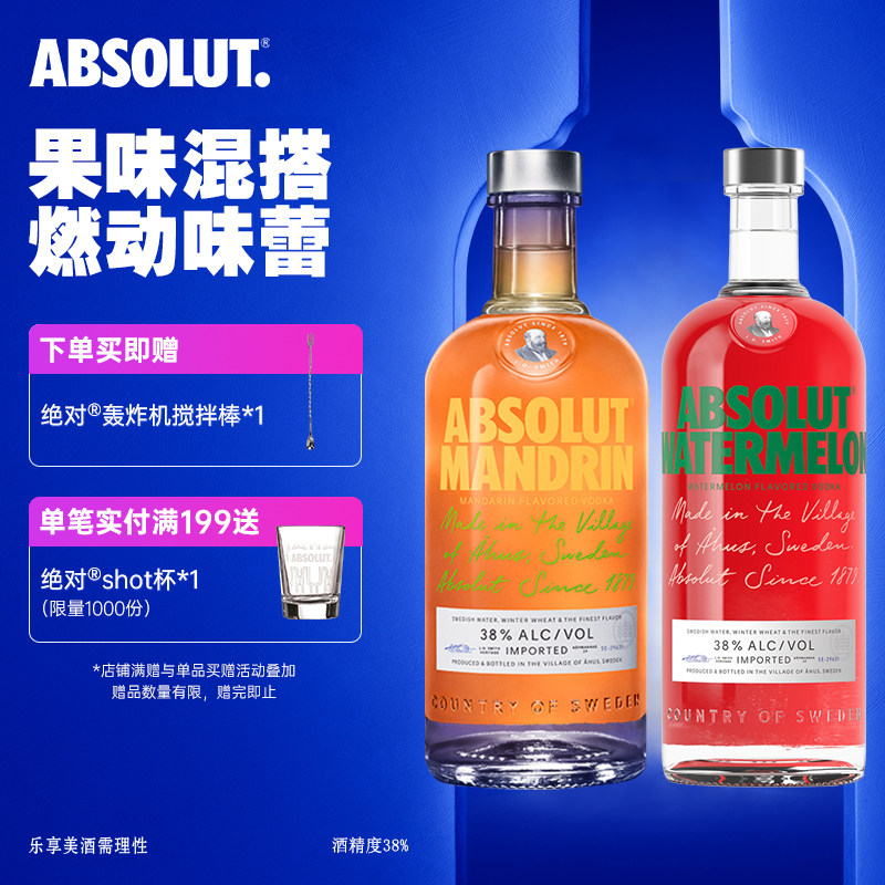 ABSOLUT绝对伏特加柑橘味700ml西瓜味700ml洋酒基酒调酒鸡尾酒