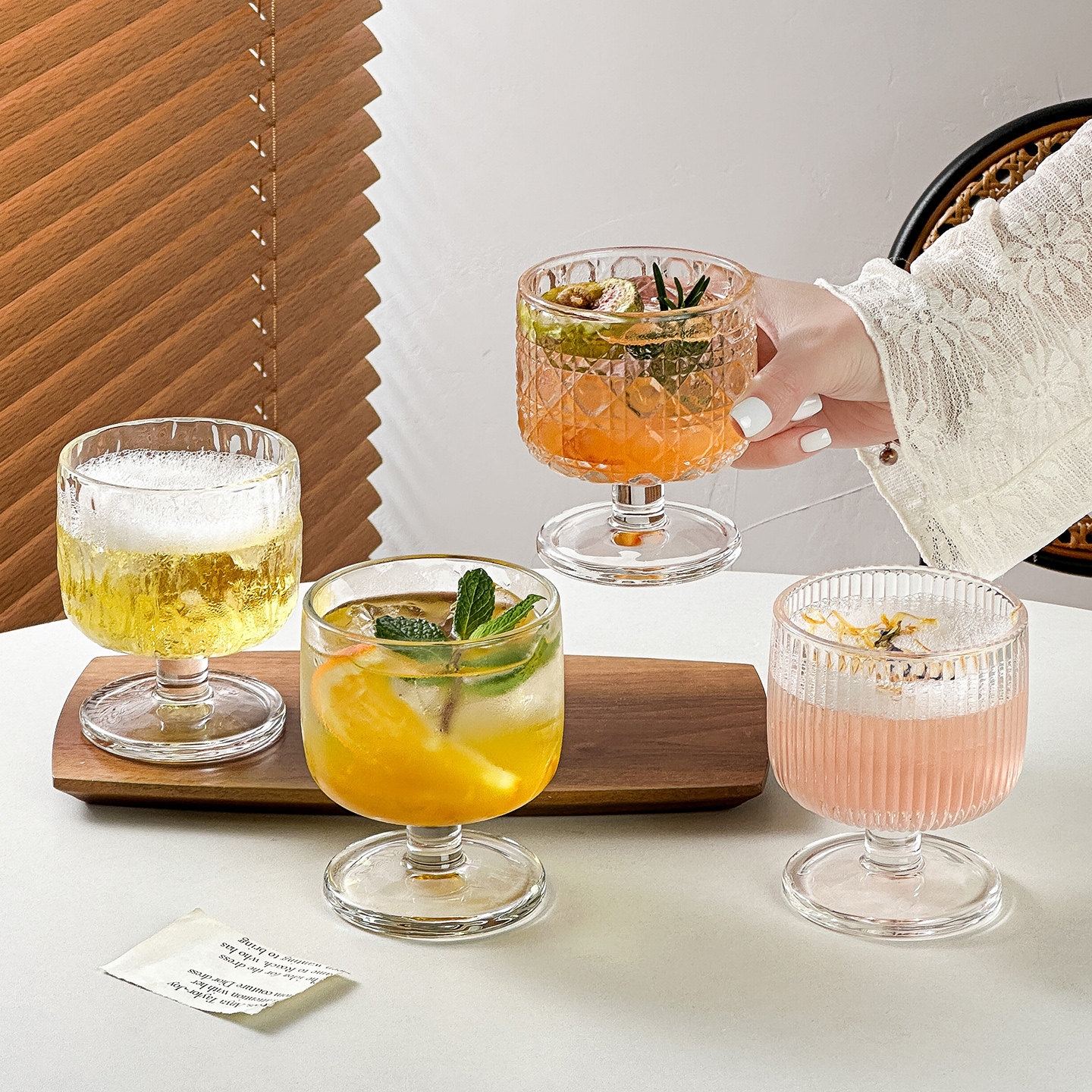 复古矮脚玻璃杯家用水杯鸡尾酒杯果汁杯高颜值饮料微醺酒杯咖啡杯