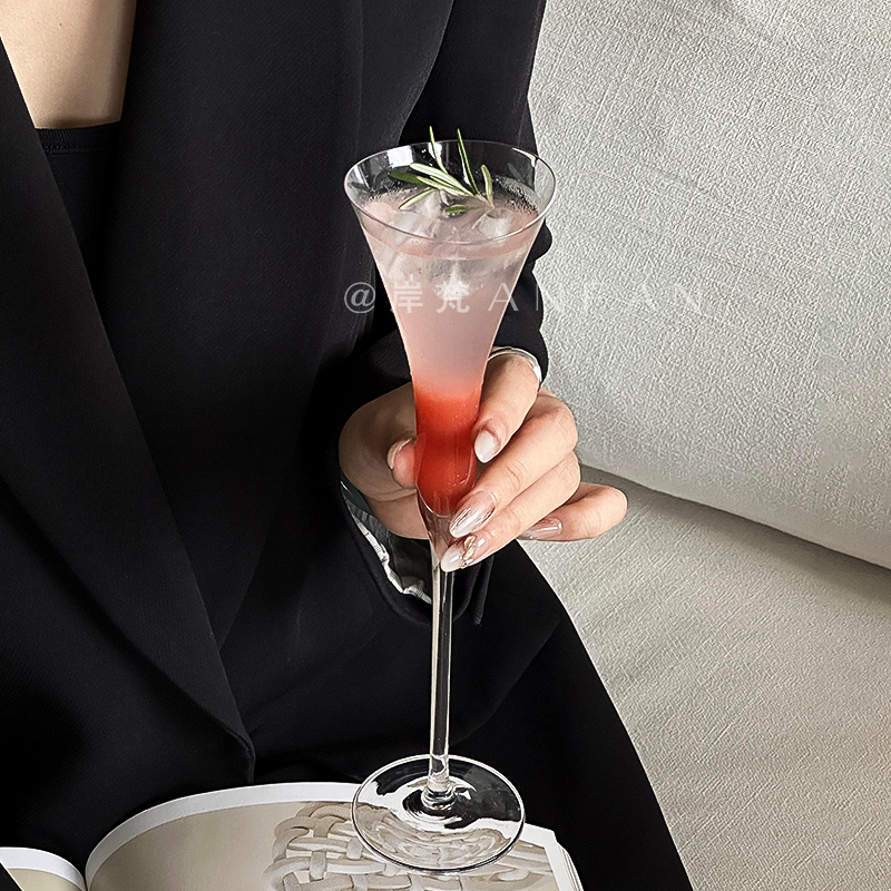 法式香槟杯红杆轻奢高脚杯高颜值水晶玻璃杯起泡酒杯鸡尾酒杯子