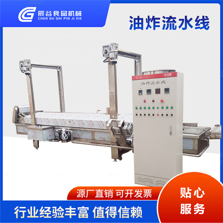 全自动鱼仔油炸机虎皮鸡爪油炸成套流水线薯片条油炸机械机器炸鱼