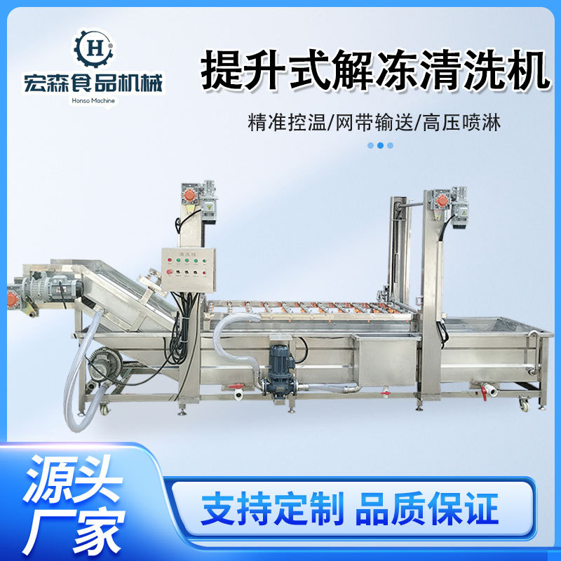 龙门提升式解冻机 鸭脖解冻化冻清洗设备 鸡爪冻品气泡解冻流水线