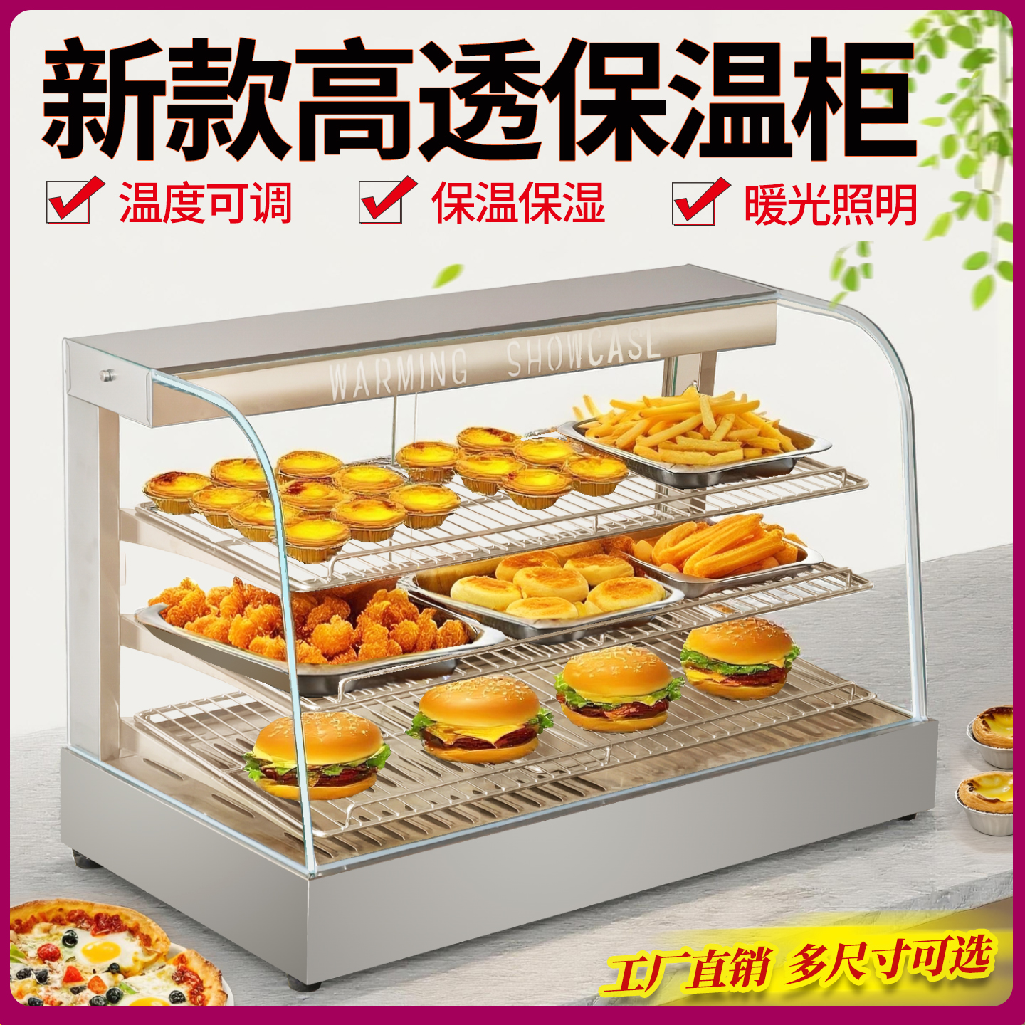 保温展示柜蛋挞保温柜商用小型加热熟食汉堡食品炸鸡面 面包台式