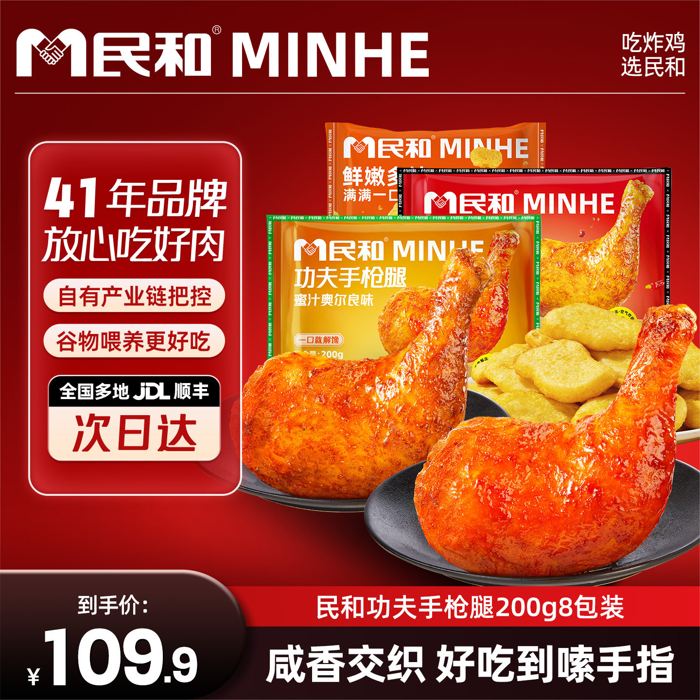 民和功夫手枪腿蜜汁奥尔良大鸡腿空气炸锅生鲜冷冻食材半成品BD