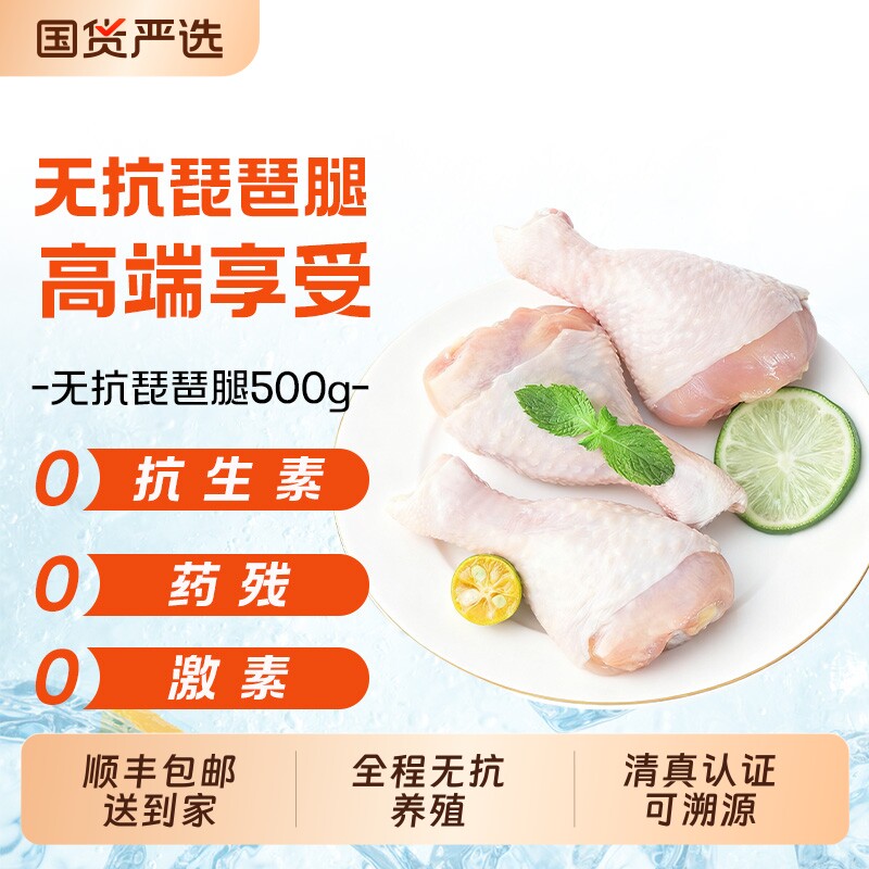 无抗鸡琵琶腿鸡腿肉生鸡肉新鲜鸡腿生鸡清真谷饲抗生素散养冷冻
