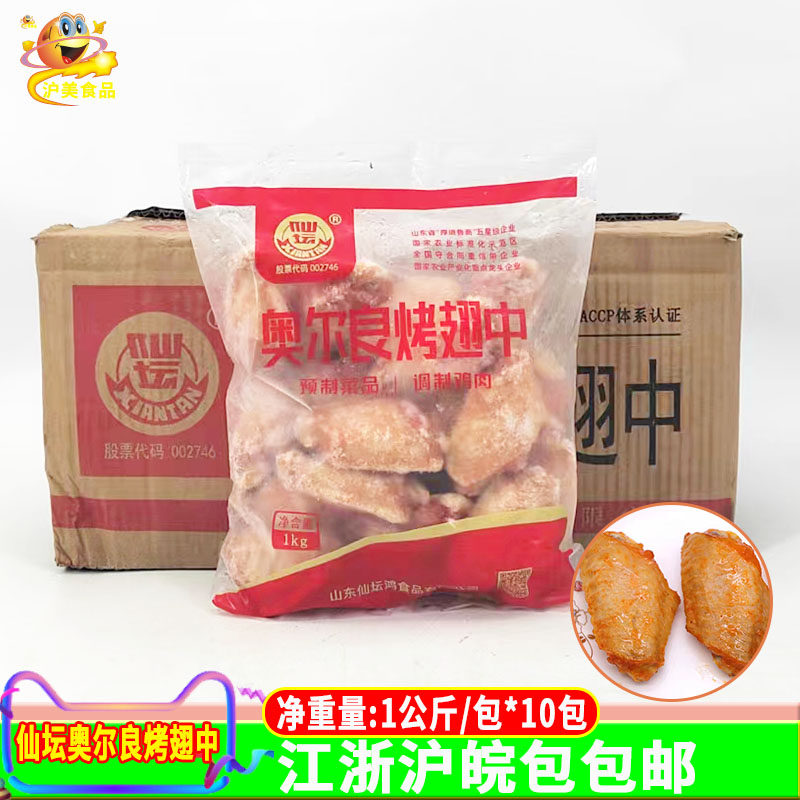 仙坛奥尔良烤鸡翅中1kg*10包冷冻烤鸡翅西餐微波炉加热即食烤翅中