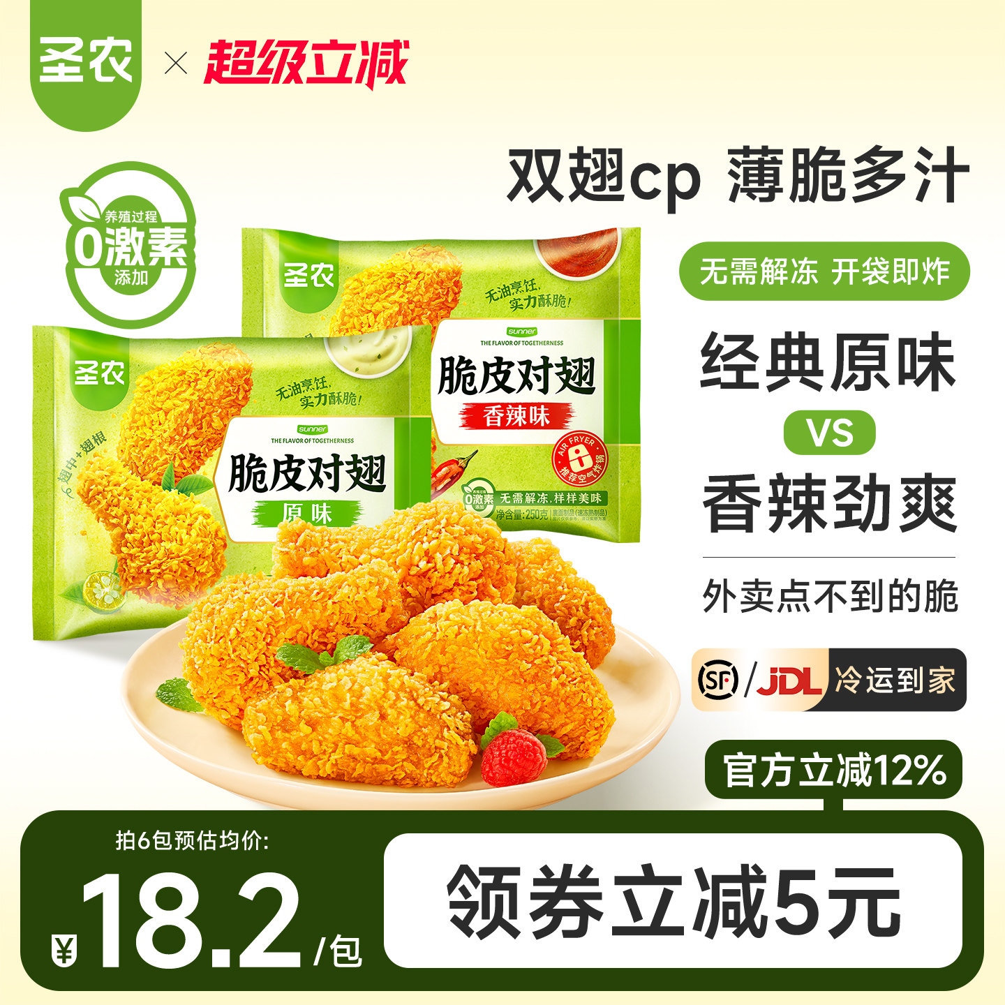 圣农脆皮炸翅鸡翅中经典原味香辣4/6包新鲜冷冻裹粉半成品小食