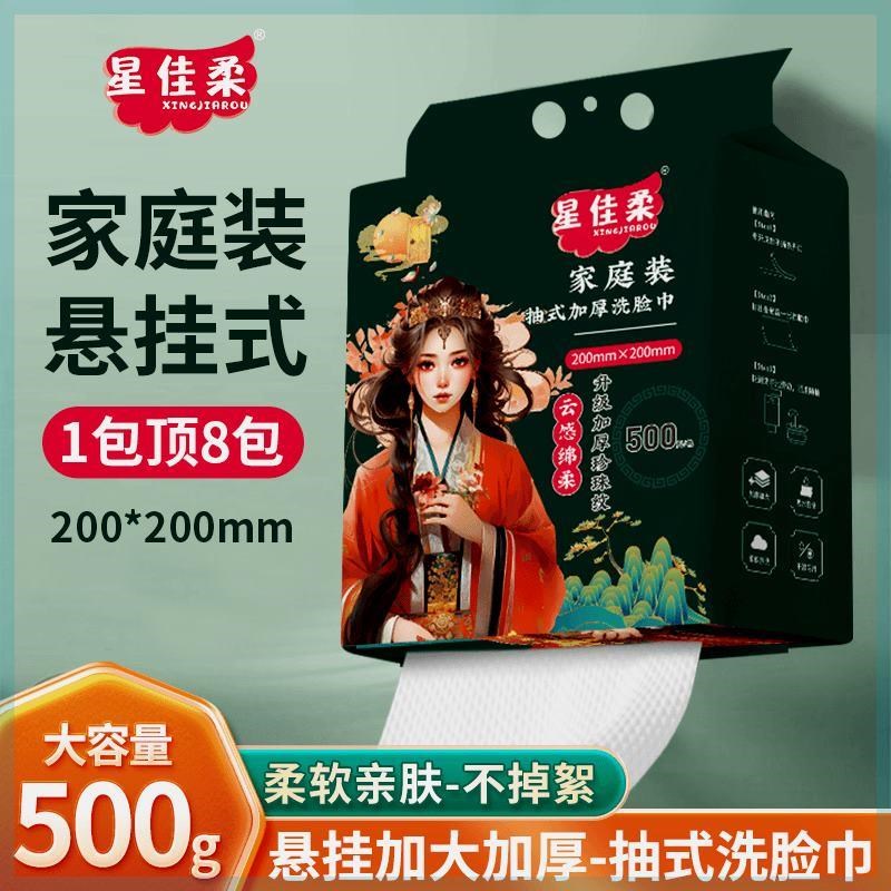星佳柔国潮风悬挂式洗脸巾一次性洁面巾加厚棉柔巾亲肤卸妆擦脸巾