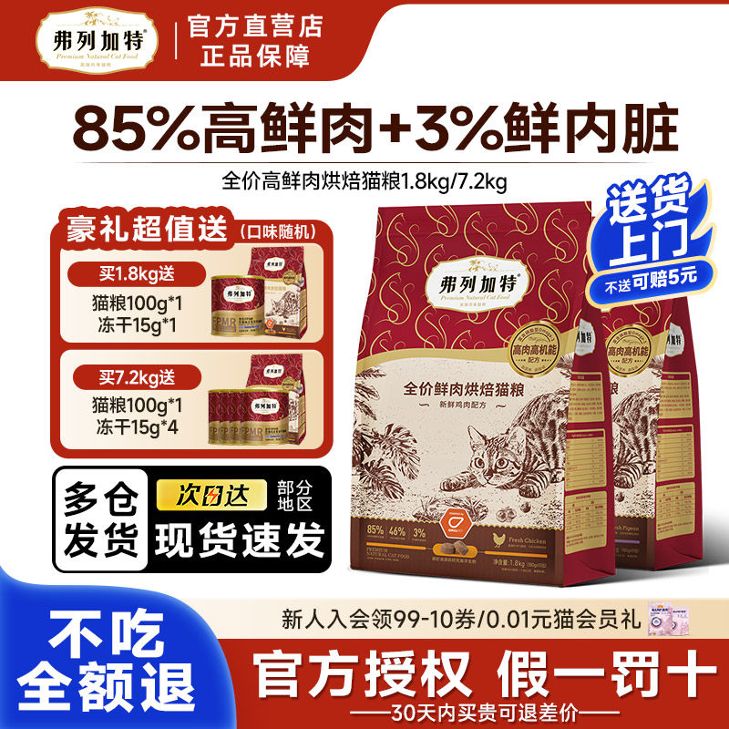 弗列加特猫粮烘焙粮鲜肉磷虾油鸡肉乳鸽成幼猫通用主食猫粮1.8kg