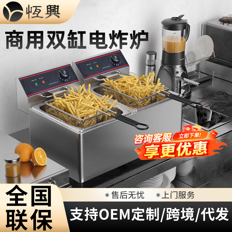 不锈钢摆摊单缸双筛油炸锅大容量商业用炸鸡排鸡翅薯条双缸电炸炉