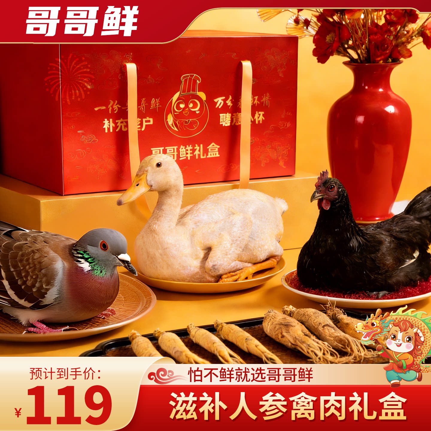哥哥鲜生鲜滋补人参禽肉礼盒乌鸡鸽子鸭肉礼包年夜饭鸡鸭鸽子冷冻