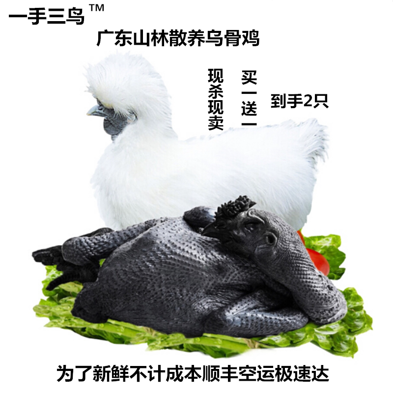 【一手三鸟】乌骨鸡山林散养乌鸡竹丝鸡肉买一只送一只共2只