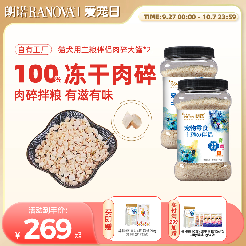 朗诺冻干猫犬零食鸡肉主粮伴侣肉碎罐480g*2
