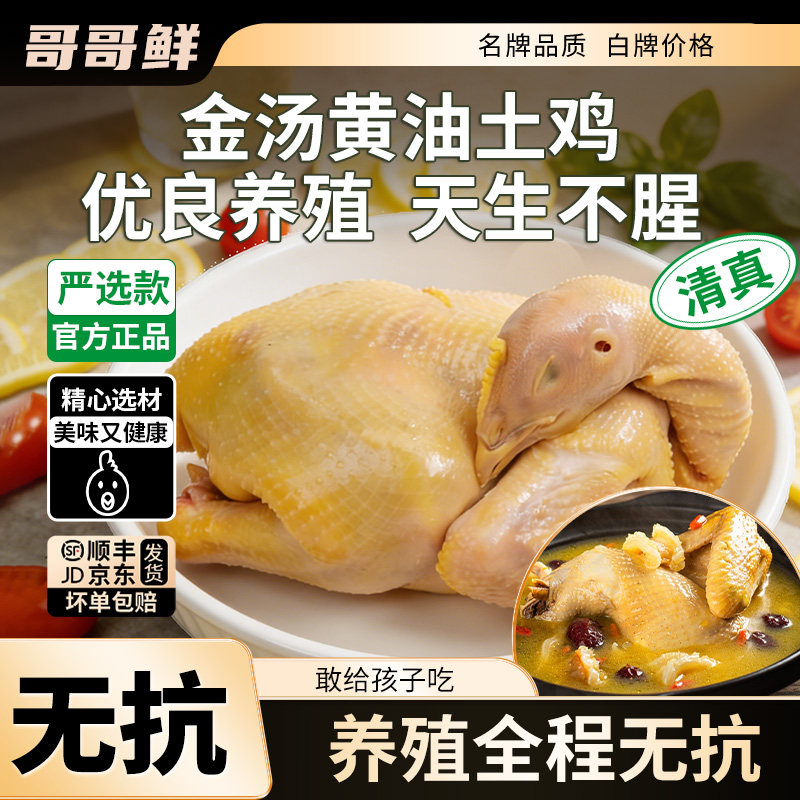 哥哥鲜无抗黄油鸡散养正宗土鸡谷饲走地鸡儿童营养滋补鸡现杀整鸡