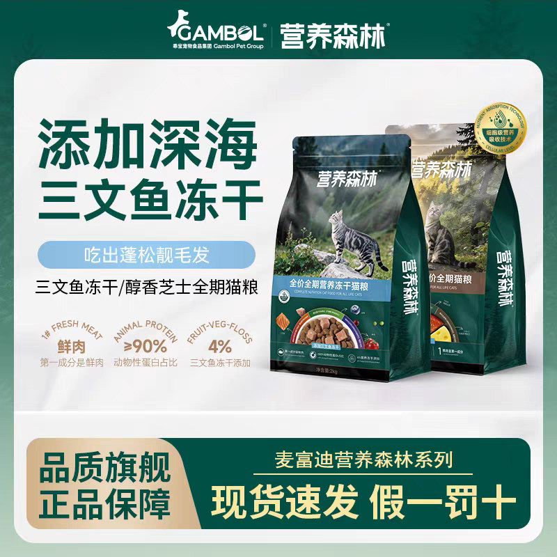 麦富迪营养森林芝士猫粮全期全价鸡肉三文鱼冻干双拼成幼猫通用
