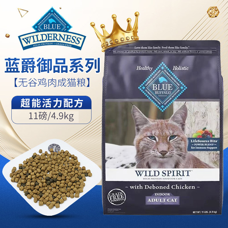 雌毛球-蓝爵BlueBuffalo蓝挚原野精灵高蛋白成猫粮含去骨鸡肉11磅
