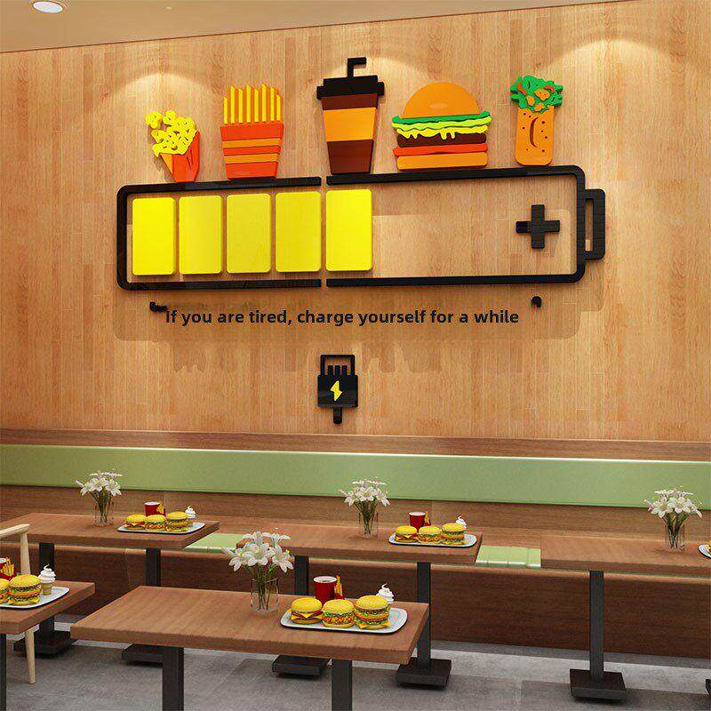 网红汉堡奶茶店炸鸡厅玻璃门壁纸贴画墙面装修饰场背景布置创意