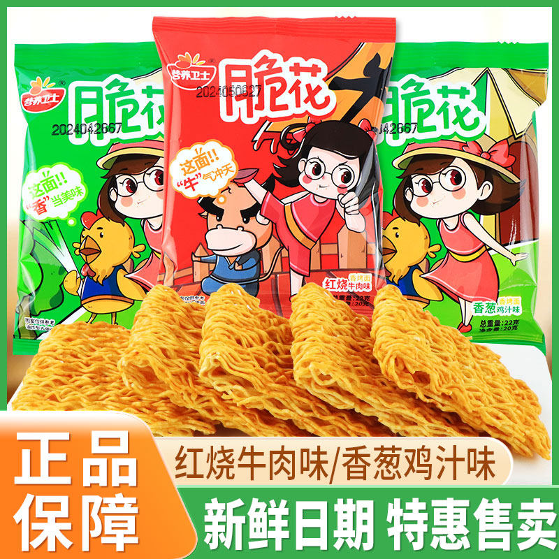 营养卫士脆花干脆面整盒多口味干吃面休闲小零食香葱鸡汁味小面饼