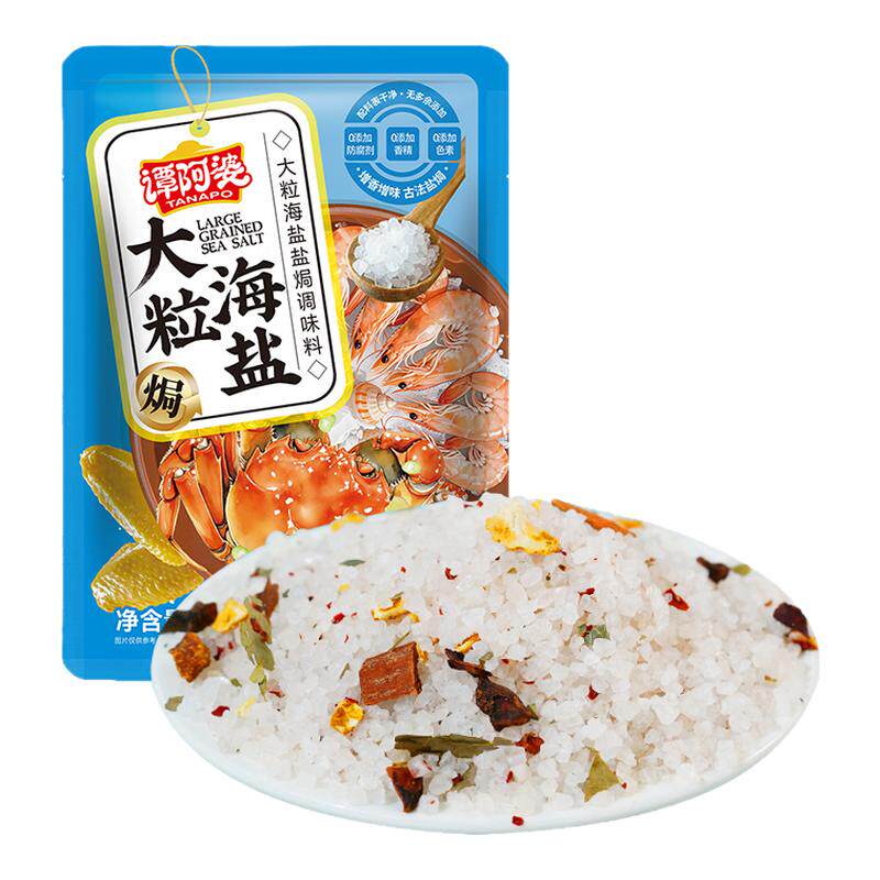 谭阿婆大粒海盐粗盐450g海鲜专用调料包盐焗虾鸡猪肝腌制官方正品