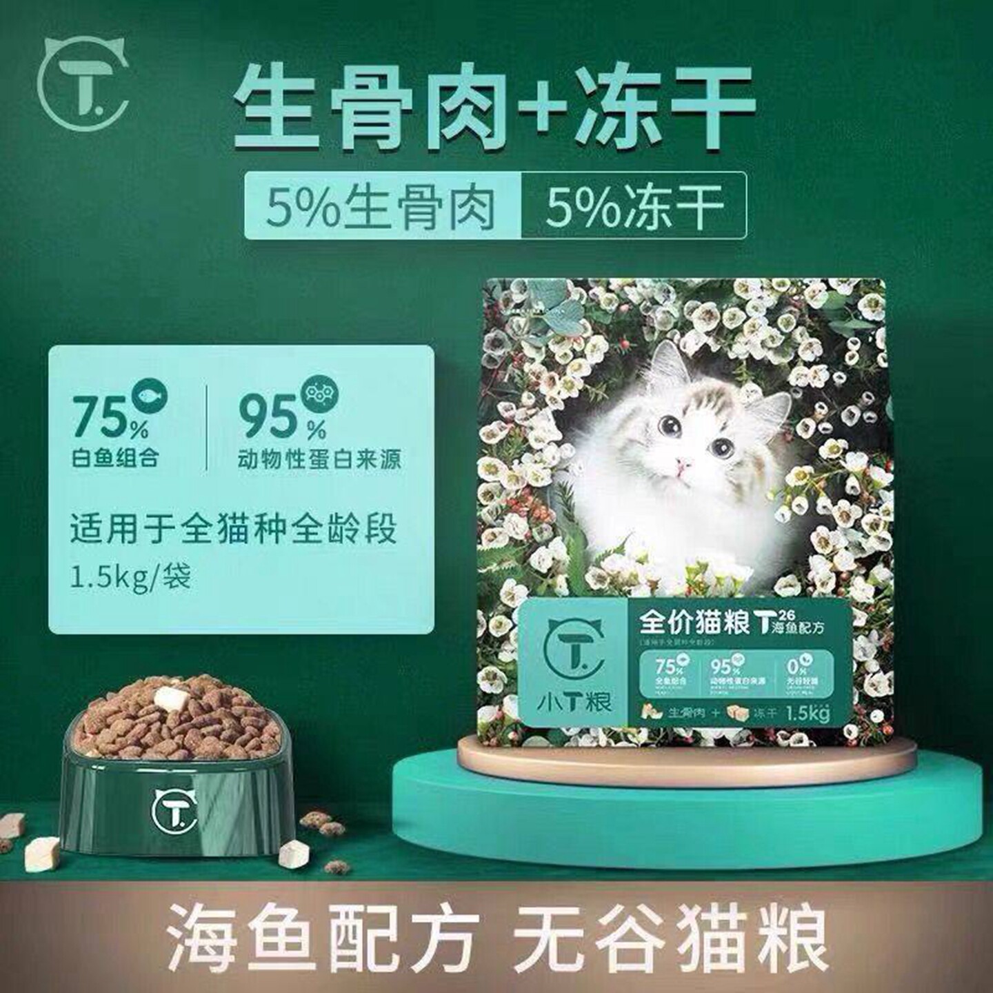 小T粮小t猫粮冻干生骨肉鸡肉海鱼白肉全价成幼猫通用型高蛋白包邮