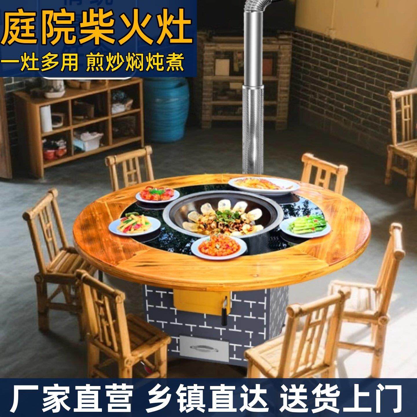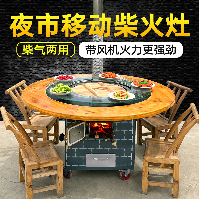柴气两用竈铁锅炖竈台桌移动柴火竈家用柴火鸡竈地锅鸡桌户外