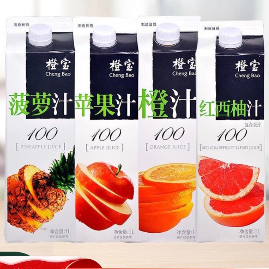 橙宝1L橙汁菠萝红西柚苹果非浓缩100%果汁饮料调鸡尾酒基酒辅料