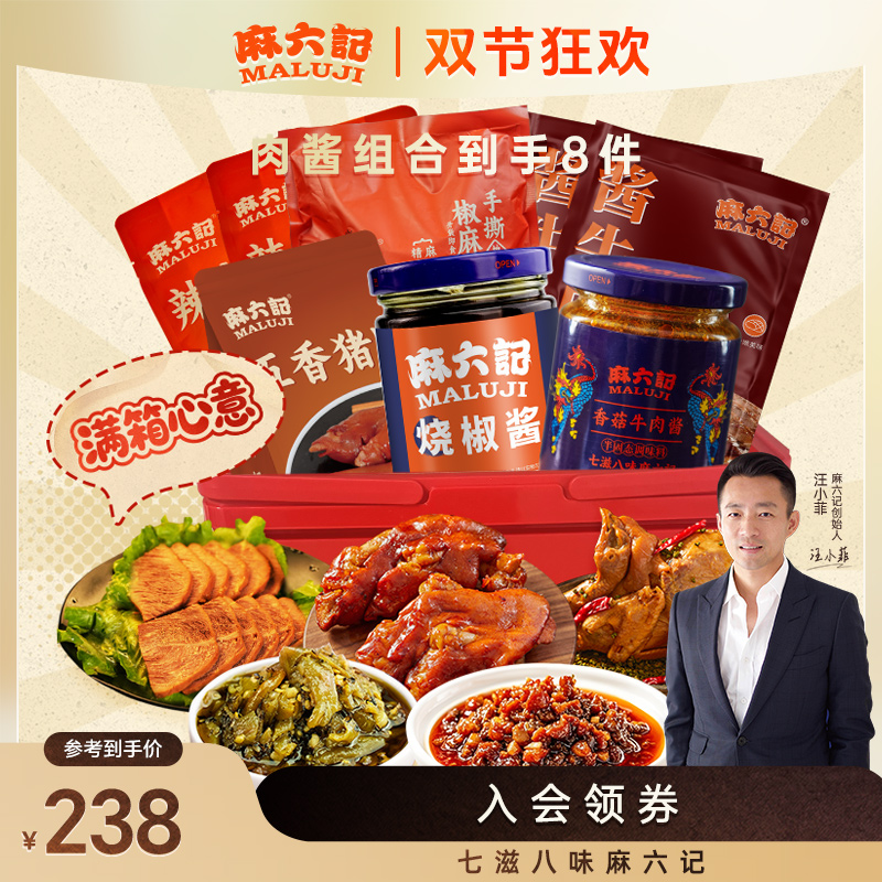 麻六记中秋礼盒椒麻鸡酱牛肉猪蹄烧椒酱香菇牛肉酱即食卤味酱料