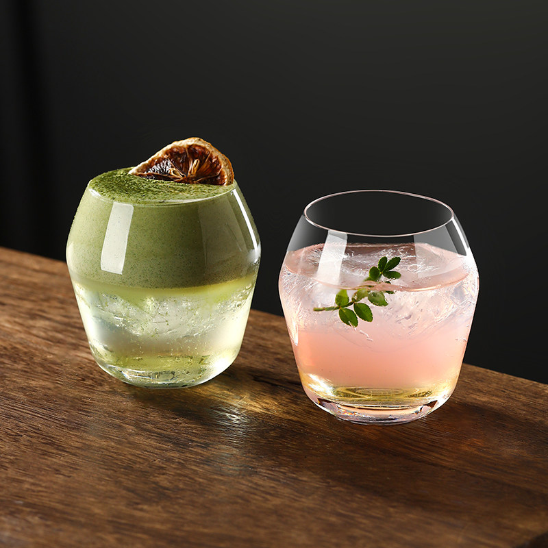 新中式设计感平底收口鸡尾酒杯果汁杯拿铁咖啡杯冷萃玻璃杯茶饮杯