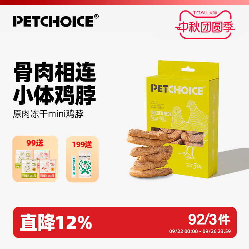 PetChoice爪子心选迷你小鸡脖猫咪去淋巴磨牙零食狗狗宠物食品50g