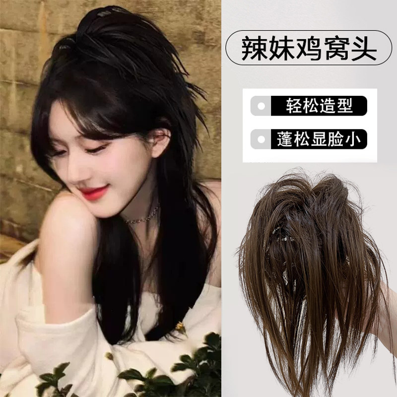 丸子头假发发圈仿真发慵懒风辣妹专属蓬松自然长须鸡窝头抓夹假发