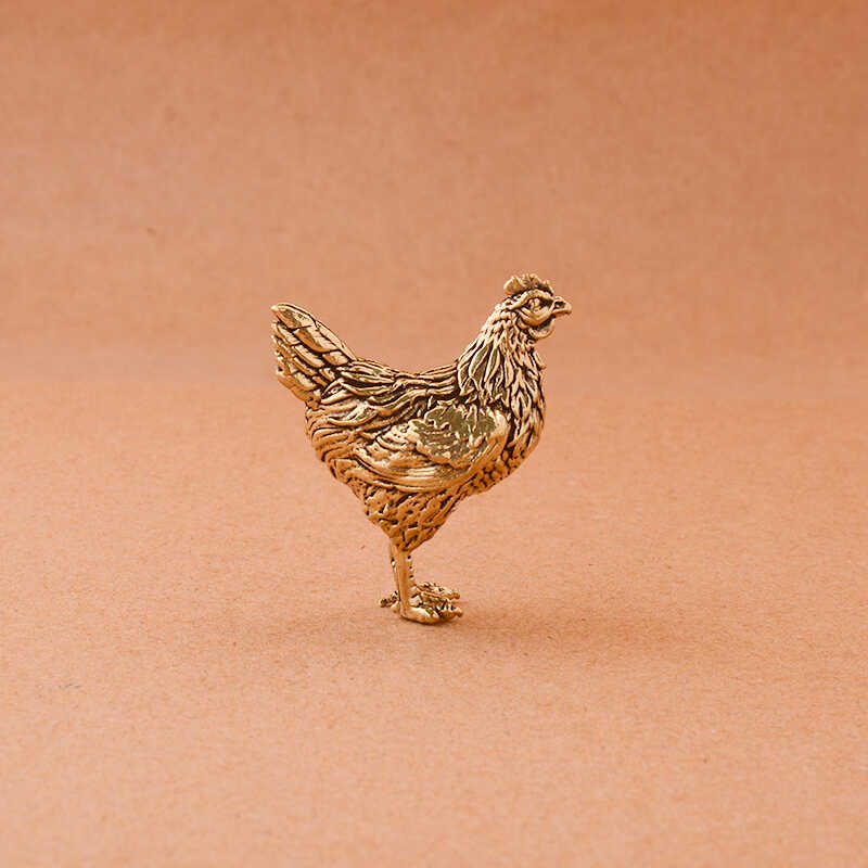 黄铜实心小母鸡桌面小摆件 铜制品鸡黄铜镇纸古玩摆件宠物玩具
