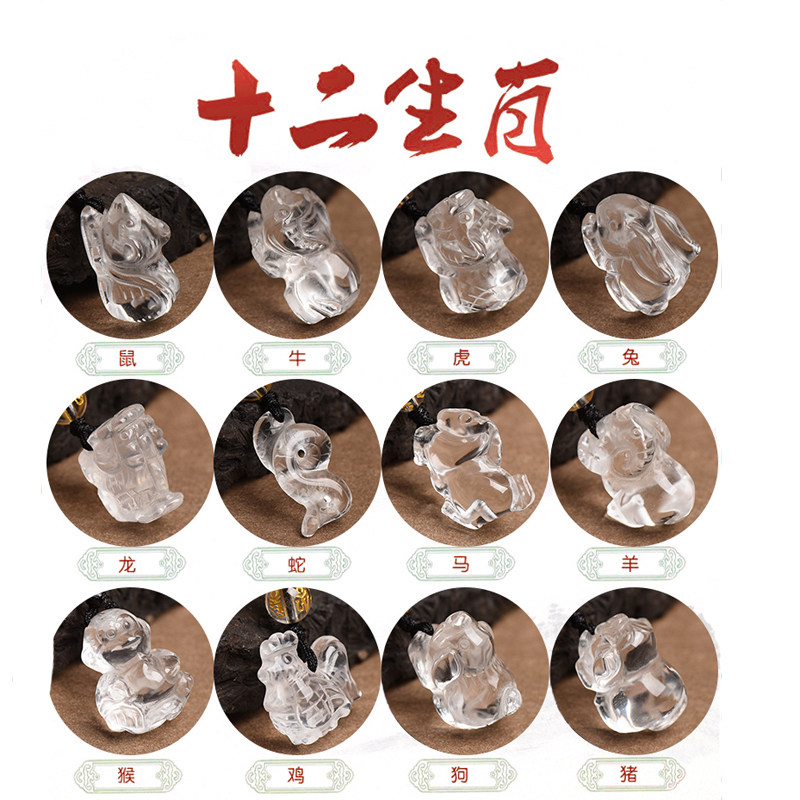 纯天然白水晶十二生肖立体手链鼠牛虎兔龙蛇马羊猴鸡狗猪情侣礼物