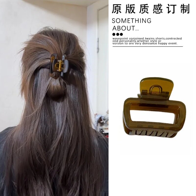 鸡毛半扎发方形抓夹女中号发量少2024新款发夹后脑勺鲨鱼夹头饰