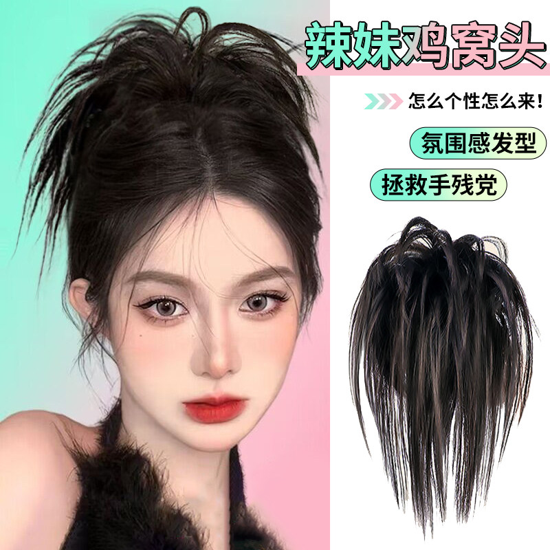 丸子头假发发圈仿真发慵懒风辣妹专属蓬松自然长须鸡窝头抓夹假发