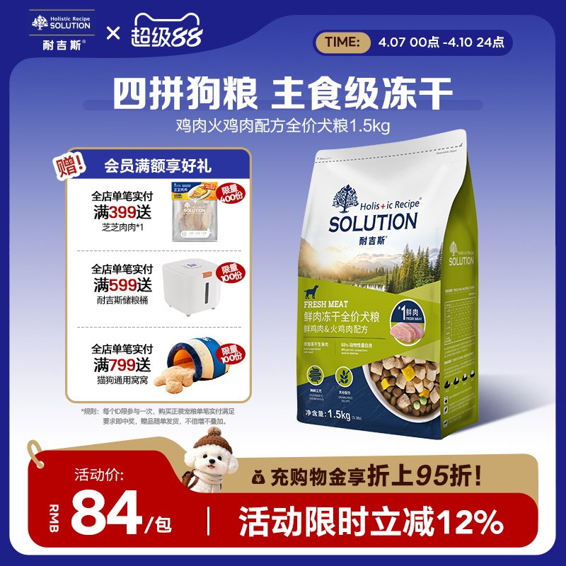 耐吉斯四拼冻干狗粮美国进口配方生骨肉鸡肉成幼犬全期通用1.5kg