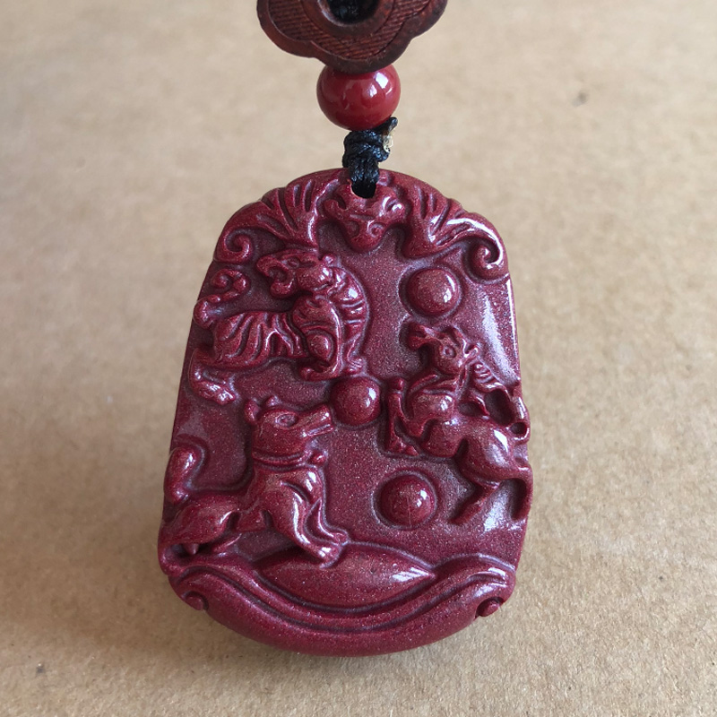 紫金朱砂三合贵人十二生肖吊坠牌属蛇鸡牛虎马狗猴鼠申子辰兔项链