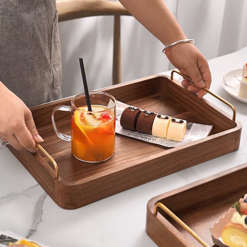 长方形实木托盘黑胡桃木茶盘家用木质餐盘木盘零食干果水杯收纳盘