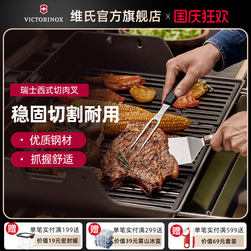 维氏Victorinox肉叉不锈钢加长瑞士进口鸡翅牛排叉西餐叉烧烤叉子