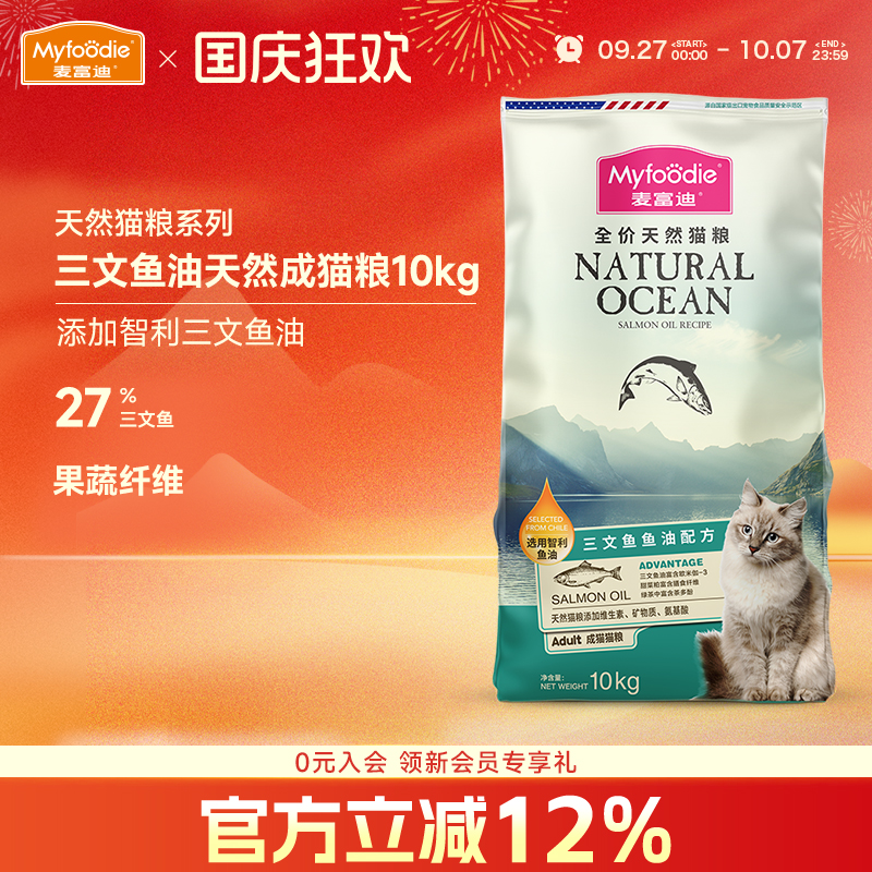 麦富迪全价天然猫粮10kg三文鱼油鸡肉营养增肥成猫专用20斤实惠装