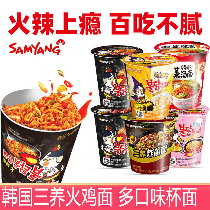 三养火鸡面杯面辣鸡肉味拌面奶油芝士味方便面炸酱泡面韩国进口
