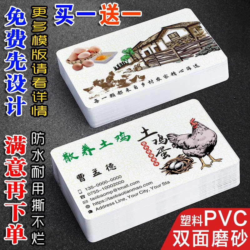 养殖养鸡场名片制作订做设计印塑料PVC防水走地土鸡蛋农家乐农场