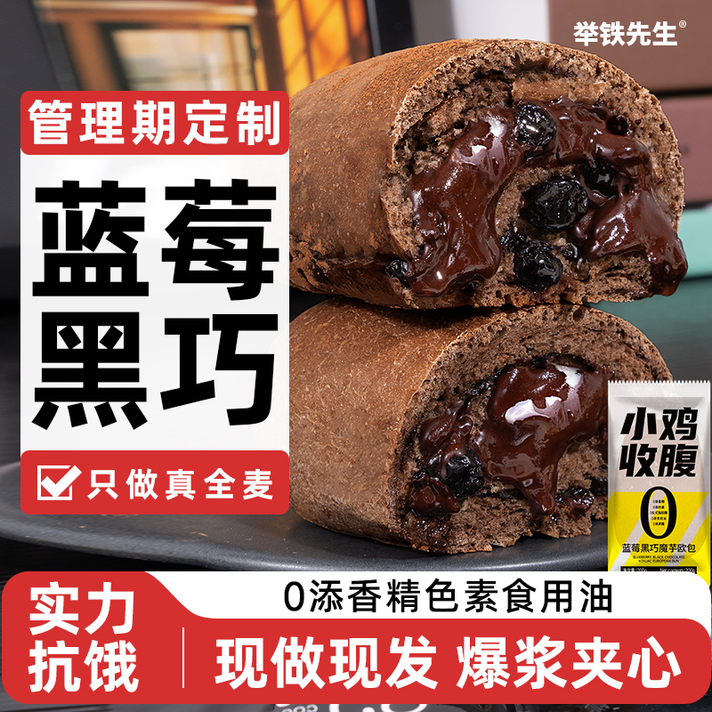 小鸡收腹蓝莓黑巧欧包魔芋全麦低0无糖精脂肪卡带馅夹心面包早餐