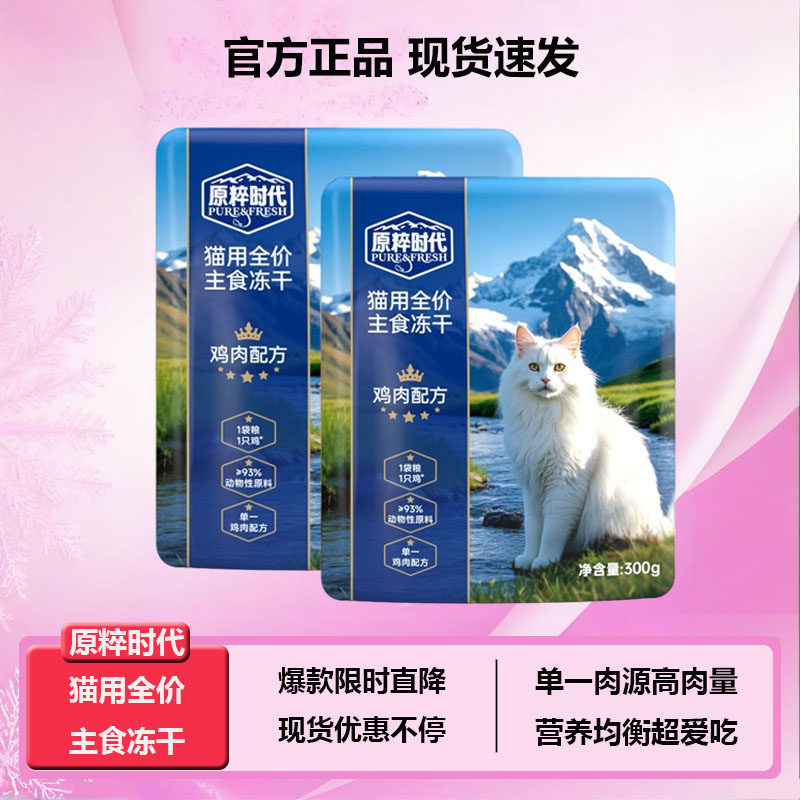 原粹时代猫用全价主食冻干鸡肉配方300g袋装营养高肉量成幼猫零食